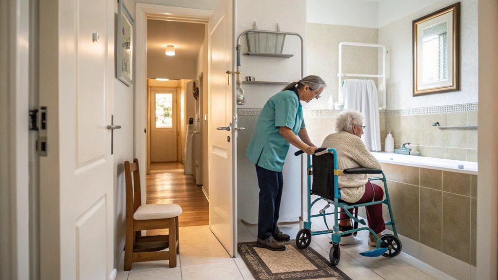 To create a safer home environment, start by clearing clutter from your spaces, as it can easily lead to trips and falls. Optimizing lighting throughout your home guarantees you can see clearly, reducing the risk of accidents in dim areas. Plus, securing loose rugs properly not only enhances stability but also brings peace of mind that you’re taking proactive steps toward a safer living space.