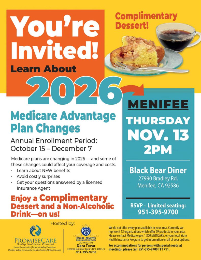 RSVP: Call 951-395-9700 or email dtovar.insurance@gmail.com