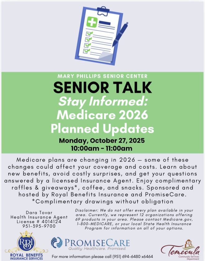 📍 Location: Mary Phillips Senior Center Temecula, 41845 6th St, Temecula, CA 92590